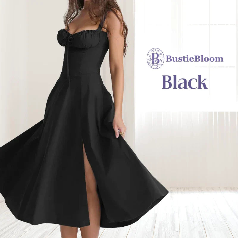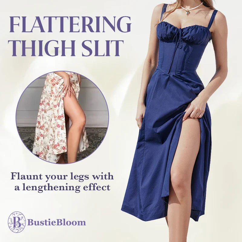 SEXY & FEMININE DESIGN - Experience the allure of our sexy thigh slit and bustier drawstring cups, adding feminine charm to your wardrobe
