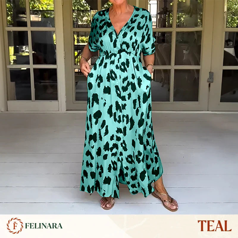 Felinara - Bohemian Casual Print V-Neck Maxi Dress