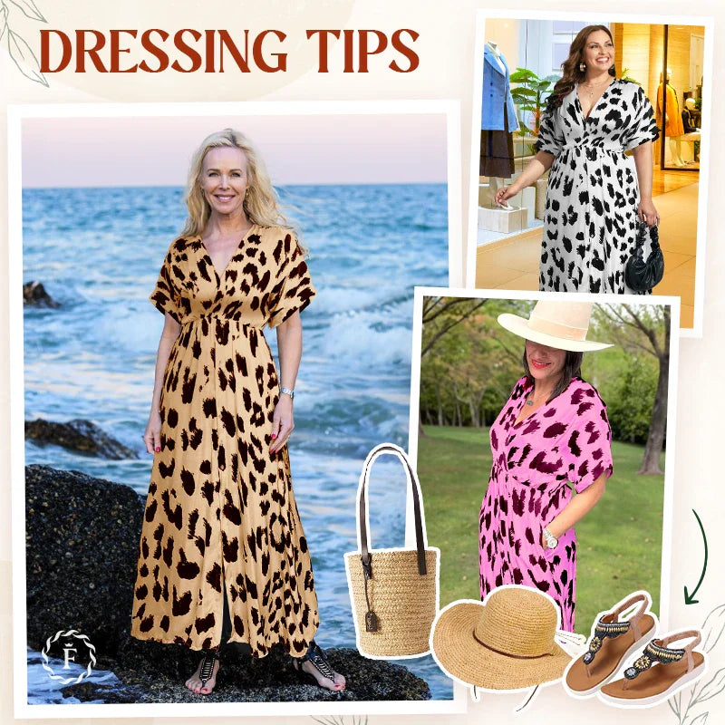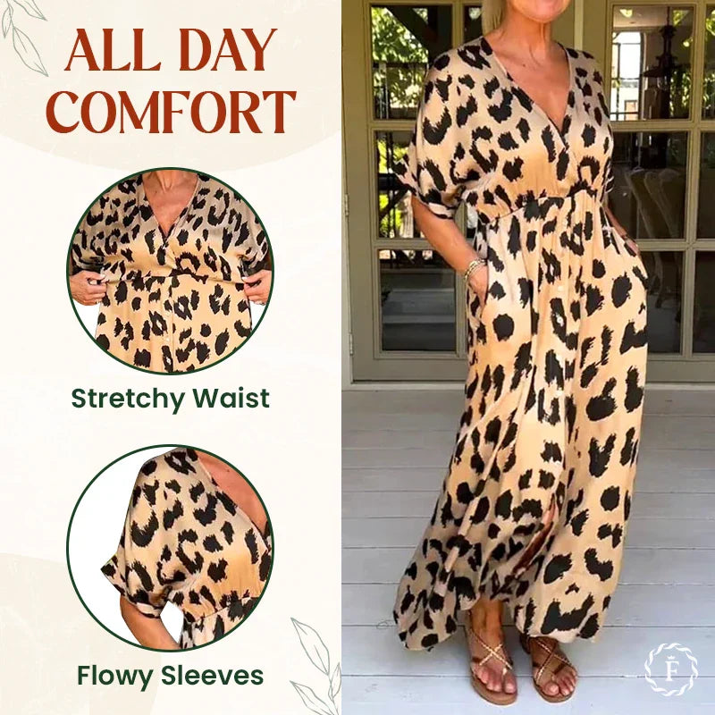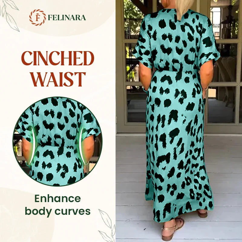 Enjoy a breezy season with the bohomian chic Felinara Dress. Its eye-catching leopard print and elastic waist will embody your free spirit perfectly.